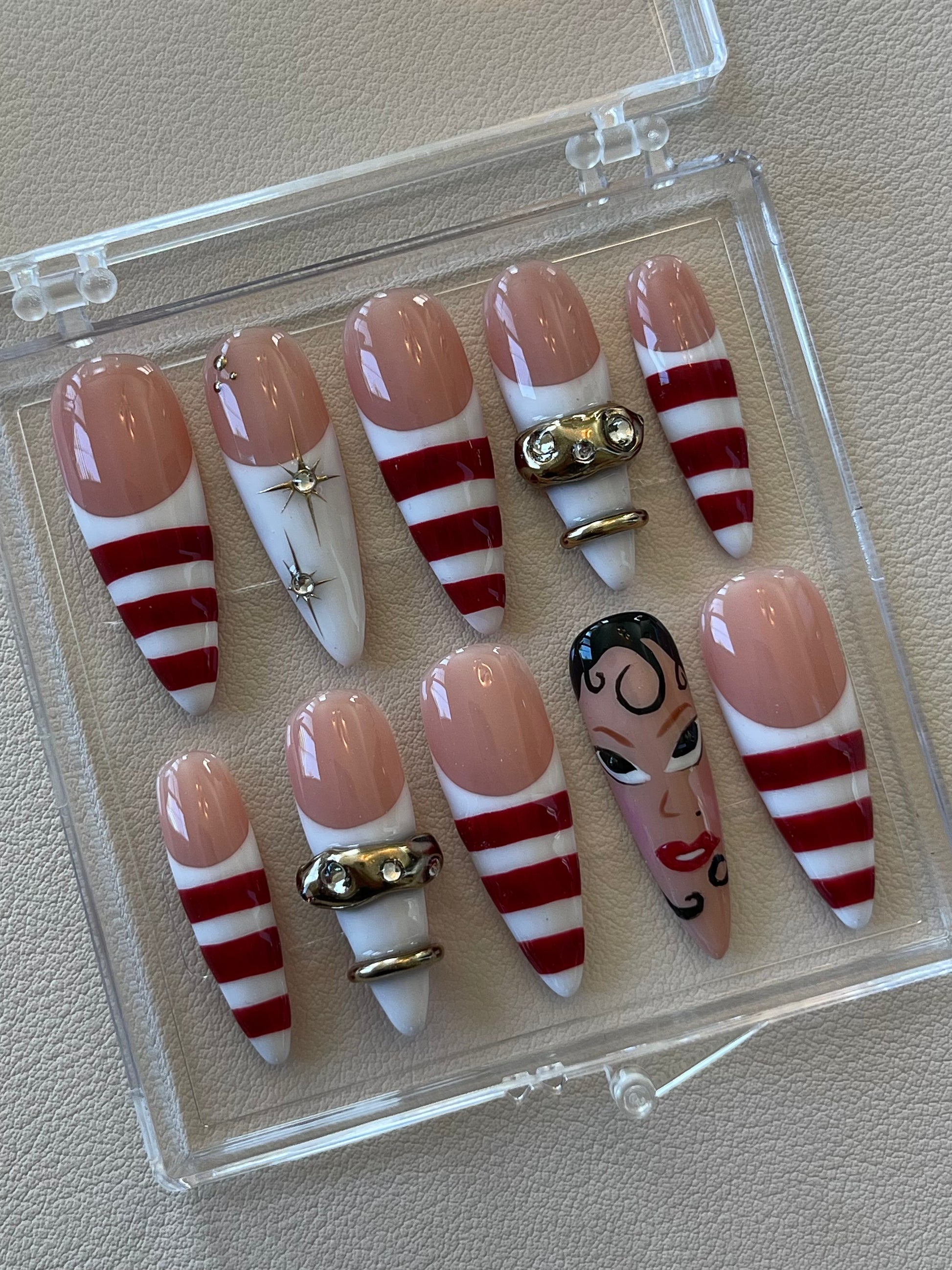 comes with acrylic box, nail prep kit , cuticle oil wipe , sticker & glue.