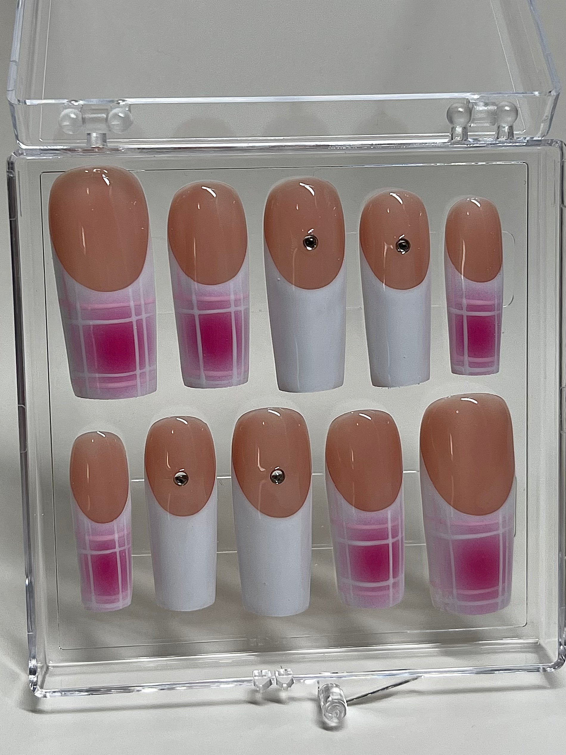 comes with acrylic box, nail prep kit , cuticle oil wipe , sticker & glue.