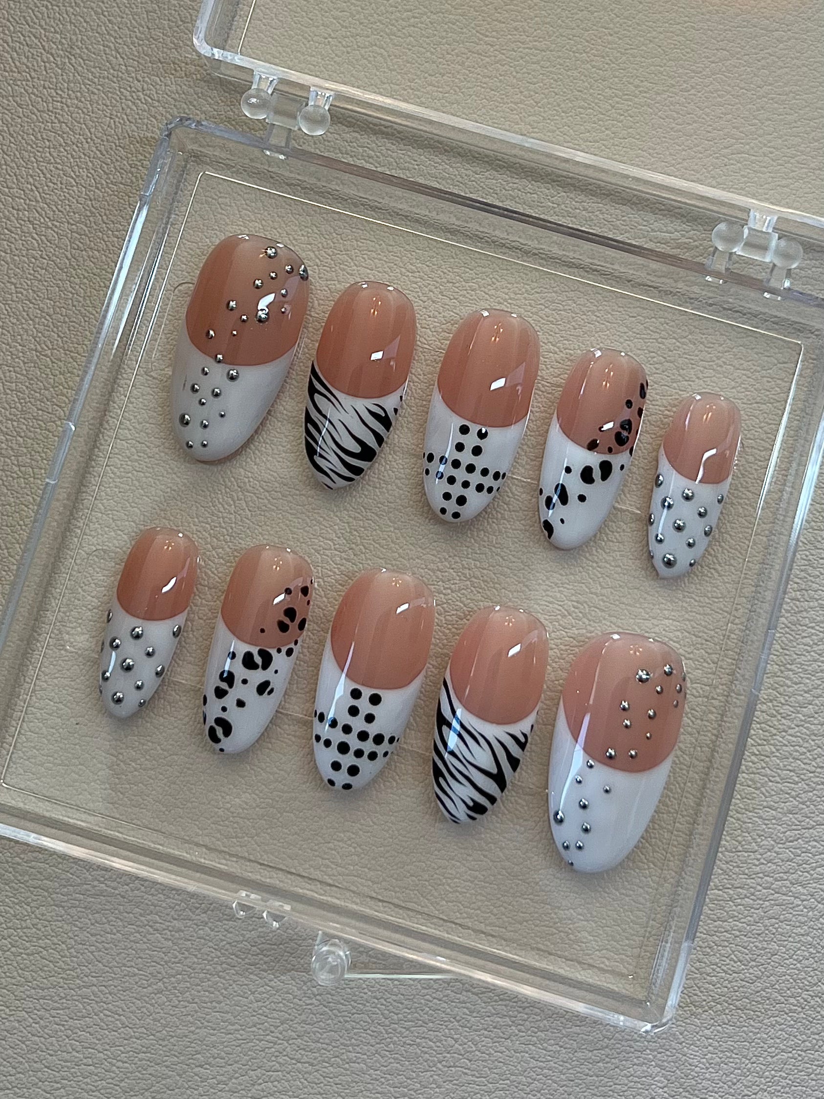 comes with acrylic box, nail prep kit , cuticle oil wipe , sticker & glue.